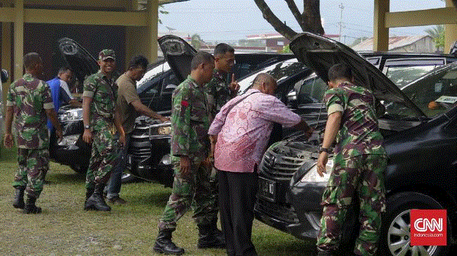 Sejumlah polisi militer dan pasukan TNI sore ini mulai melakukan pengecekan terhadap seluruh mobil rombongan. Pemeriksaan tak hanya dilakukan diluar, setiap mobil dinyalakan dan dites gas dan remnya. Kondisi lampu dari setiap mobil juga tal luput diperiksa.